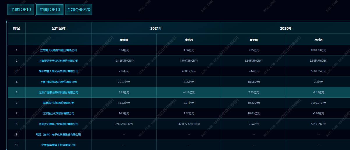 本周,芯查查企业SaaS重点关注半导体材料、化学品环节的硅片、电子特气和光刻胶及附属产品企业排名情况。