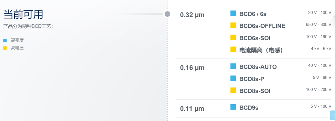 其第三代0.18μm BCD工艺于2017年下半年开始量产,并于2018年通过AEC-Q100认证,成本比其第二代BCD工艺更低。