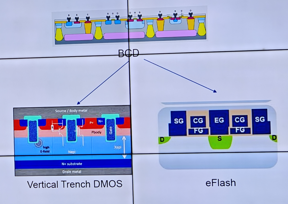 韩明更进一步举例说,“汽车中常用的泵类智能驱动就需要用到BCD工艺与eFlash工艺;智能高边开关需要用到BCD工艺与VDMOS工艺;而高端的MCU/DSP,则需要用到高密度Flash工艺,以及高性能计算核心。”