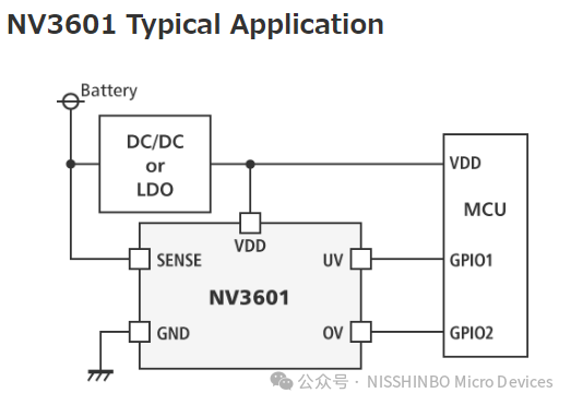NV3601是一款采用CMOS工艺的窗口型电压检测器。除了监测电压降低之外,它还可以检测过压异常,所以可以详细掌握系统的运行状态。此外,由于SENSE引脚具有42V的高耐压,因此可以直接监测电池电压。