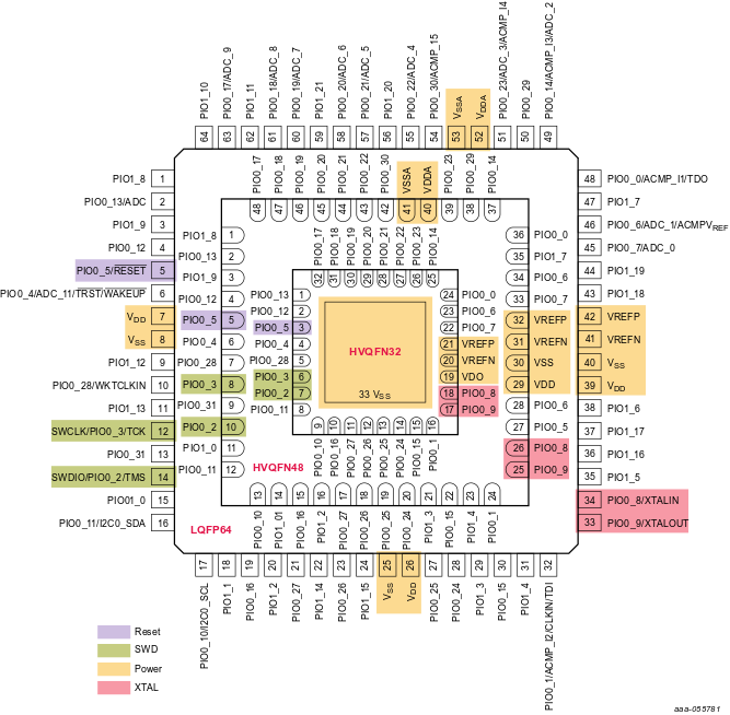 LPC865提供10mm2 LQFP64、7mm2 HVQFN48和5mm2 HVQFN32封装。