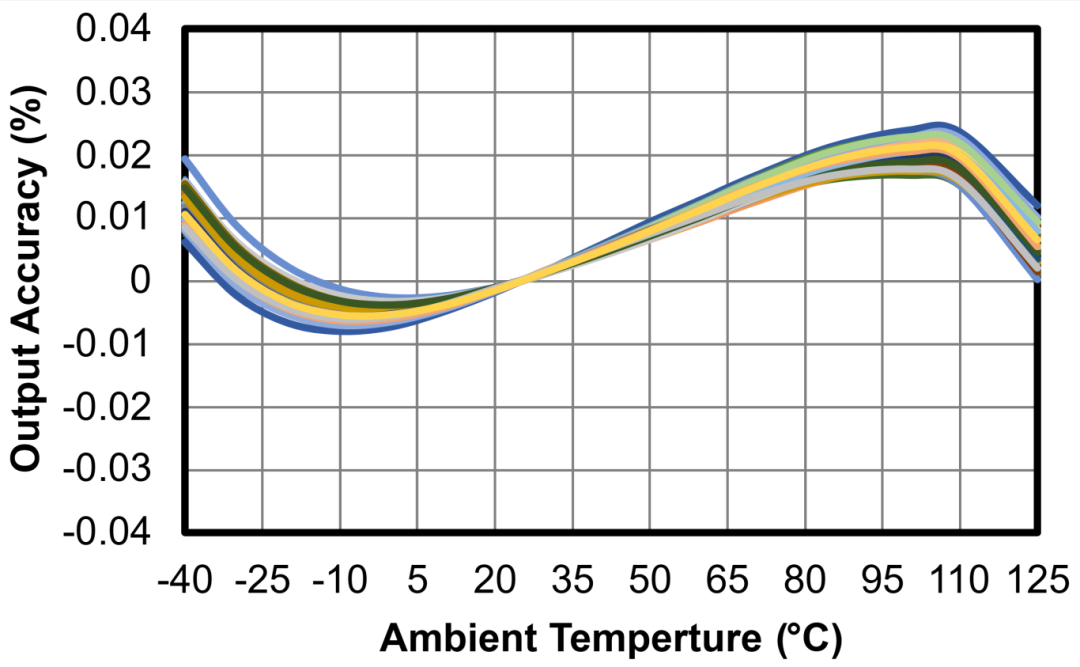 全温度范围芯片的输出精度随温度的变化曲线如下: