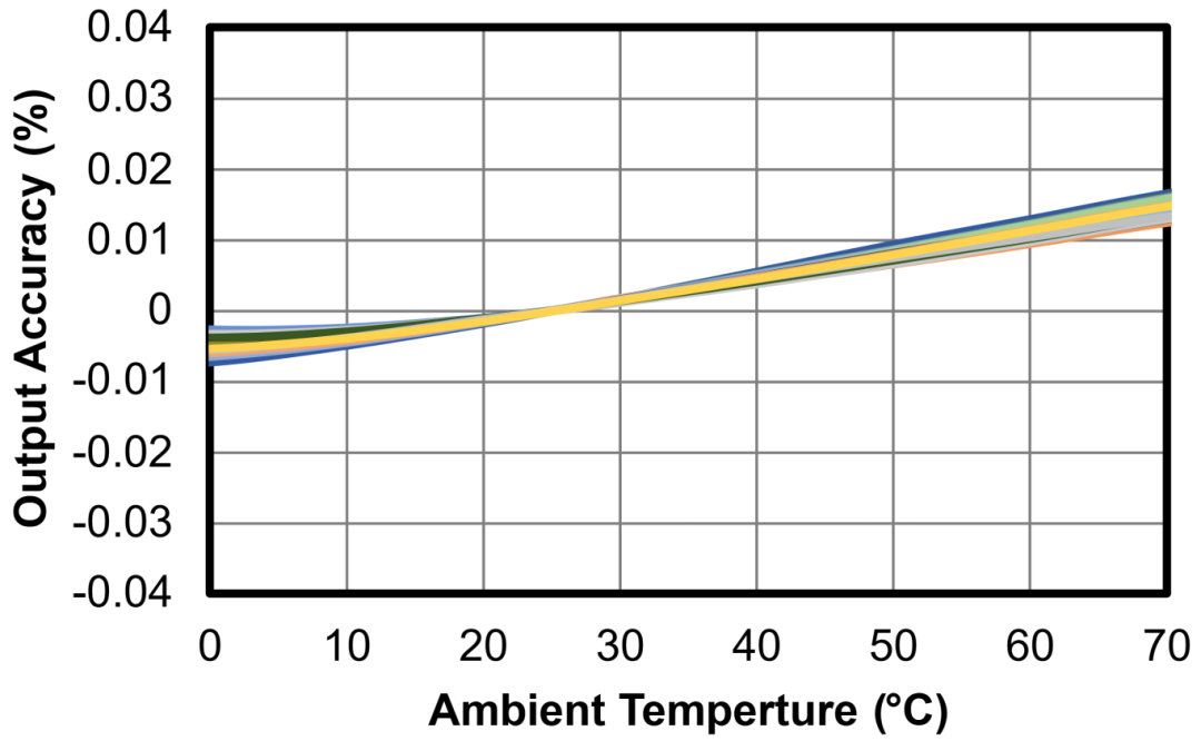 其中0°C~70°C下芯片的输出精度随温度的变化曲线如下:
