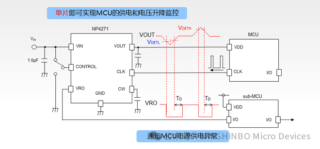 1. 内置输出电压升降监控功能和WDT功能,实现了高度稳定的系统和小型化