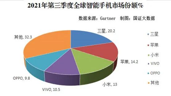 Counterpoint Research 发布的2021年Q3中国国内手机市场的销量调查报告显示,国内第三季度的智能手机总销量达到 7650 万部,在全球销量中占比22.4%。
