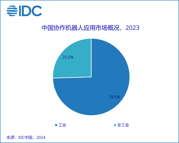 从行业应用市场来看,协作机器人应用场景多元化成为趋势,目前来看,工业领域应用市场占据主要份额约74.5%,非工业领域应用正加速渗透。