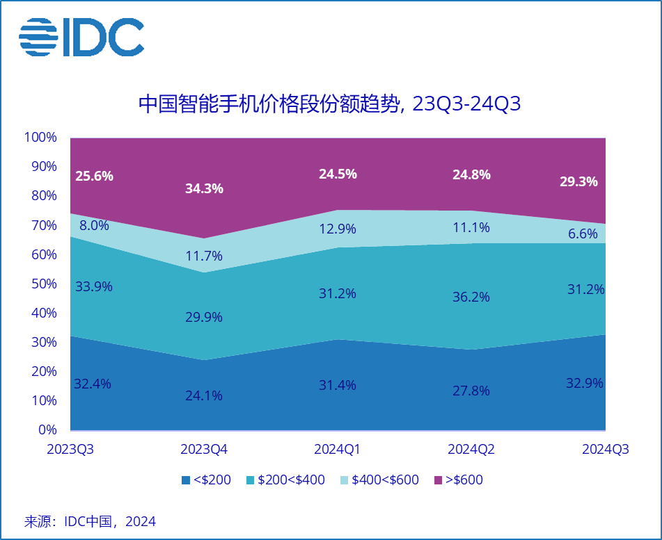 IDC中国研究经理郭天翔指出,自去年四季度以来,中国智能手机市场表现稳步回升,过去三年积压的换机需求逐步释放,许多用户已到了不得不换手机的时候,经济环境因素并未明显抑制换机需求。随着9月下旬开始政府多项促进经济政策的推出,明显增强了市场信心和活力。如果相关政策可以持续改善市场信心,推动经济企稳回升,有望进一步刺激消费,进而对手机市场的稳定表现起到更加积极的作用。