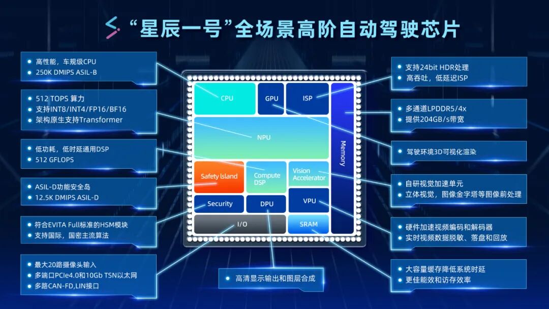 更重要的是,“星辰一号”高性能的NPU架构原生支持Transformer大模型,完全适配智能驾驶向端到端大模型发展的趋势,同时高算力的DSP单元为客户化自定义算子的迭代提供可编程能力。