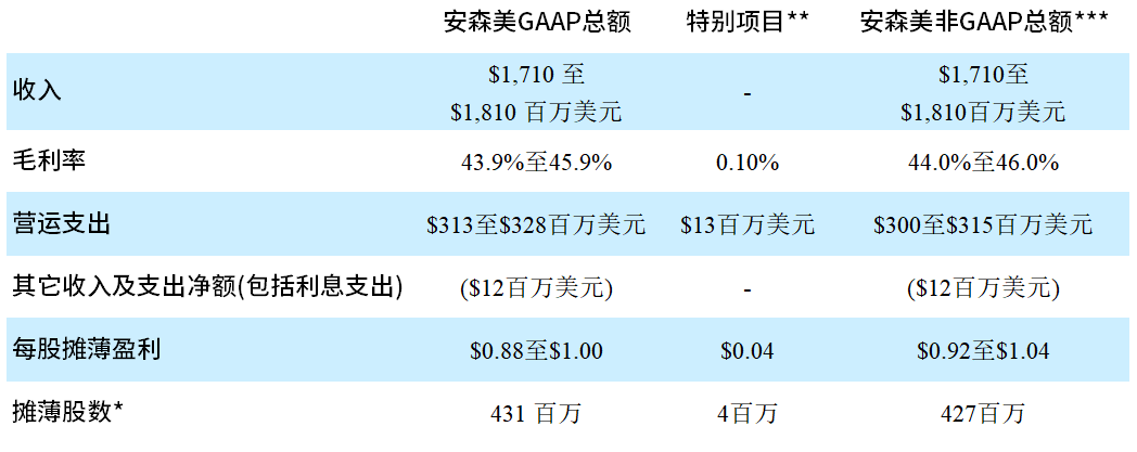 2024年第四季度展望2024年第二季度展望下表概列安森美预计2024年第四季度的GAAP及非GAAP展望: