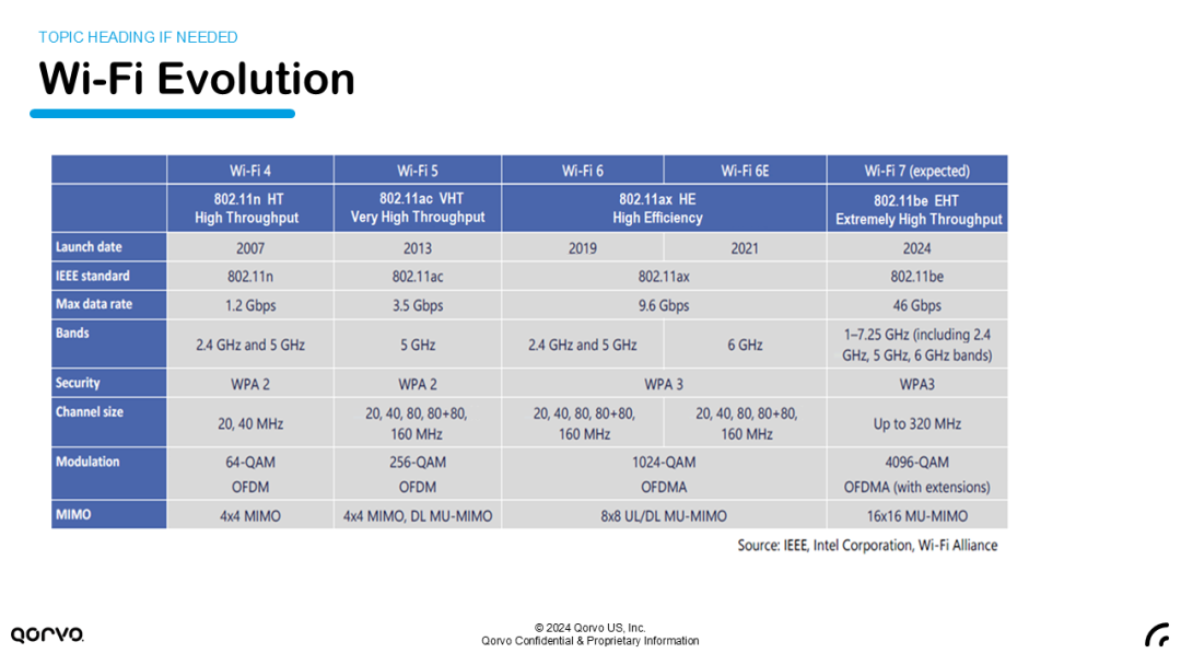 Qorvo亚太区无线连接事业部高级行销经理Jeff Lin(林健富)指出,Wi-Fi 7引入了多项新技术,最重要的三项就是多链接操作(MLO)、4096-QAM调制技术以及320MHz频宽,这些改进旨在更高效地利用频段资源,增加设备连接速度,并优化手持设备的电池使用效率。此外,WiFi 7还优化了唤醒时间管理和加密技术,以增强网络连接的稳定性和安全性。