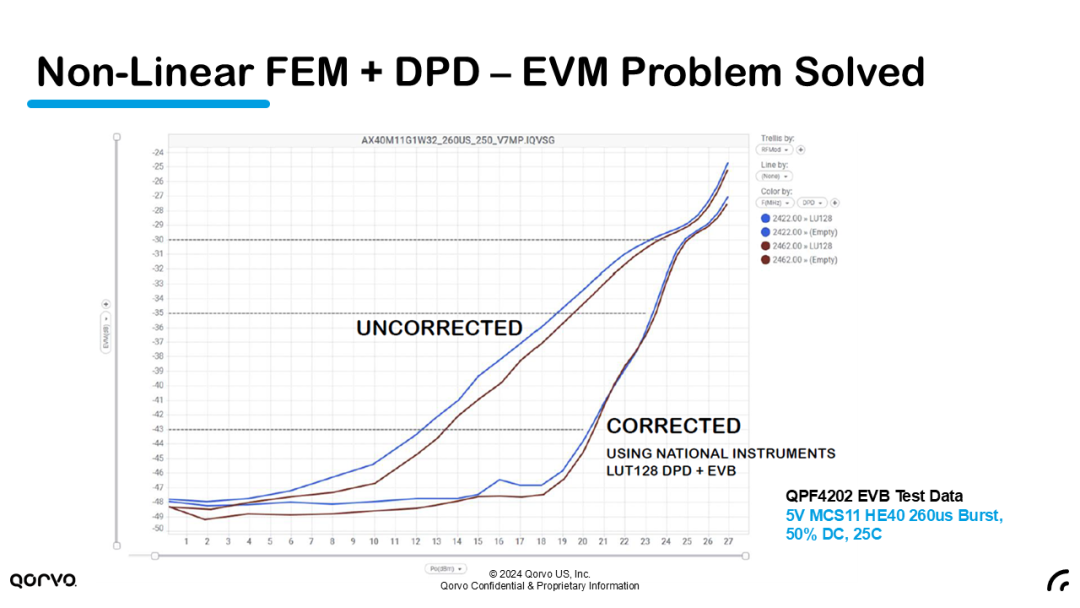 目前,Qorvo也在用非线性FEM来实现三频段Wi-Fi 6E和Wi-Fi 7设计。该方法能提高PA的效率并降低了功耗,并能降低设备成本。此外,新方法还允许高性能多射频企业级AP符合PoE(以太网供电)预算的严格限制。