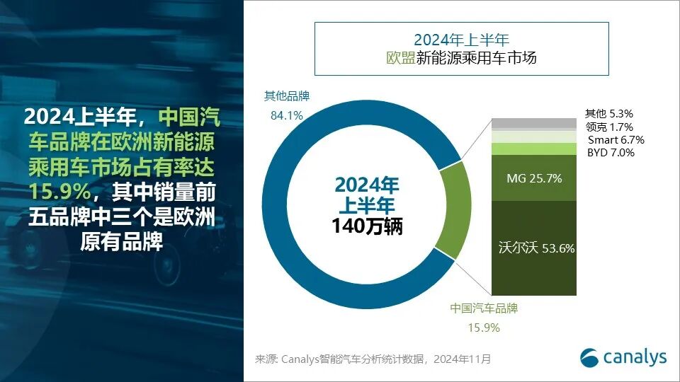 Canalys首席分析师刘健森表示:“欧盟与中国在新能源汽车关税问题上的争端对全球汽车行业的电气化进程带来了重大阻碍。地缘政治紧张局势可能会阻碍双方厂商的专业知识分享以及投资联合研发。如果争端升级,欧盟可能会削弱其新能源汽车生态系统发展的竞争力,从而在全球汽车和绿色能源领导地位中失去位置。然而,我们仍然乐观地认为,中国市场将依然保持开放,并为全球市场提供新能源汽车技术和供应链提供合作机会。同时两个区域的市场潜力,将吸引两个地区持续密切合作以寻找长期的解决方案。 ”