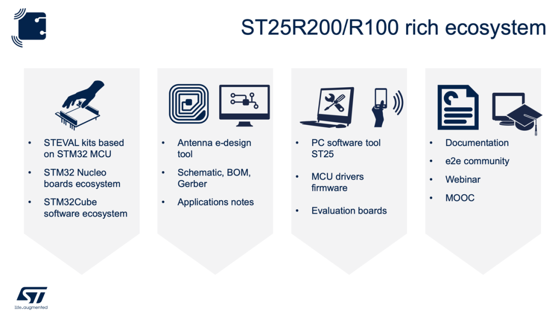- 简化NFC技术应用:ST25开发生态系统提供丰富的硬件和软件生态系统及文档,可简化实施并缩短产品上市时间。