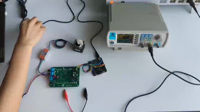 电机转动演示如以上动图所示:1.连接上位机和串口,2.给demo板供电,3.提供脉冲信号,4.发送寄存器配置的指令,此时电机转动起来。