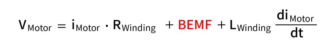 公式1表达了电机绕组电压的计算,由公式1可知,电机转动时,绕组电压包含反电势电压。当电机电流为零时,绕组两侧电压即为反电势电压。