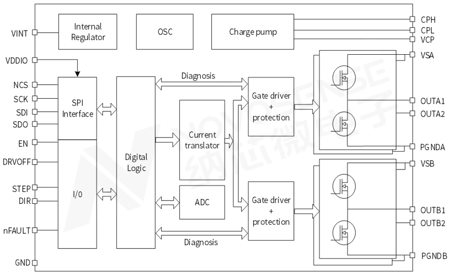 该芯片支持最大1.35A满量程电流,支持16档电流调节,内部最高32细分,多种衰减模式选择,同时可支持四个半桥独立工作。NSD8381支持母线欠压保护,过流保护,温度报警和过温保护;同时还支持输出负载的开路诊断和过流保护。此外,NSD8381还集成了本文介绍的堵转检测功能,可以用于堵转故障输出,可以帮助客户应用于堵转检测场合。