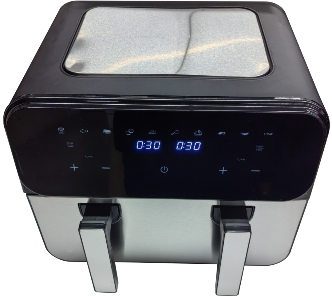 该款双锅空气炸锅结构简洁,成本低廉,具备掉电记忆、抽锅记忆、故障检测,过温保护、温幅范围合理,同时菜单多样化等功能需求,为居民提供最实惠,便捷的使用体验。