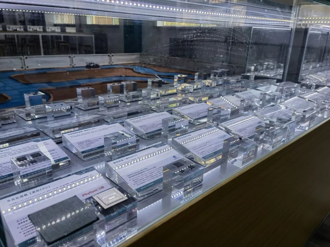 中电港现场工作人员邓捷芳介绍道:由中国电子团委牵头,积极统筹集团内部资源投入小平实验室的建设。除中电港负责总体承建之外,其他所属企业也在产品和展示素材等方面给予了大力支持,包括中国长城PKS电脑整机,FT腾锐D2000和腾云S2500系列CPU、“点沙成金”视频,以及华大半导体、华大电子、上海贝岭、澜起科技、华大北斗等集成电路企业的样品样片等方面给予了大力支持。