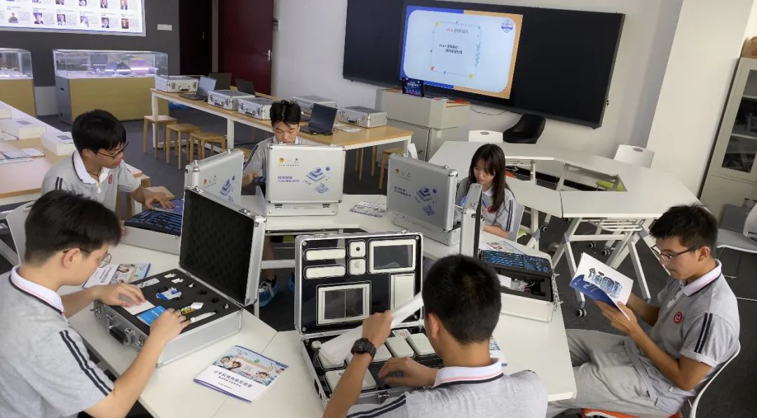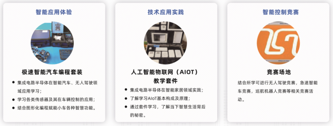 该实验室分为四大区域,分别为集成电路半导体感性认知区、动手实操区、多媒体教学区、赛事教学区。涵盖体验实验箱、历史人物事件图例、产品实物和配套学习套件,从感性认识到了解历史,再从历史看当下集成电路半导体领域科技的快速演变。通过演示实验、科学实践、对抗赛事等活动循序渐进,为中学生打开了一扇了解集成电路半导体的“窗户”。