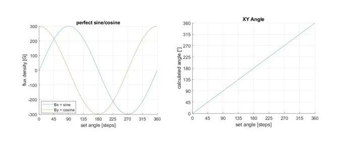 角度传感器可以轴端放置在 XY 平面中或当机械限制阻止轴端放置时,可以轴侧放置。轴端磁场均匀,无需数字处理即可提供准确的角度信息。轴侧排列由于非线性磁场,通常需要多点校准才能获得相似的精度。