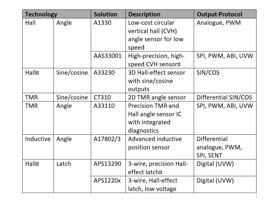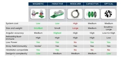 关键磁性和感应式转子位置传感器规格