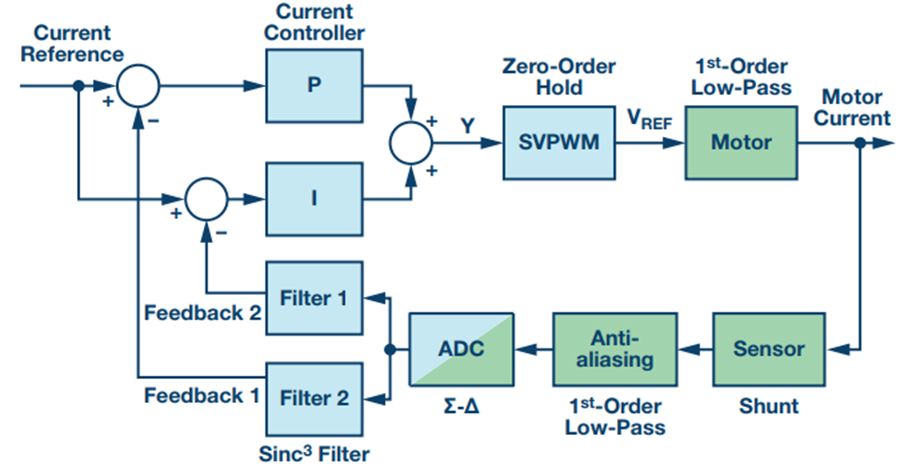 尽管缺少明确定义的采样时刻,但Σ-Δ转换可用来测量电机电流而不会有混叠效应。本文所述技术可将sinc滤波器对PWM信号的脉冲响应正确对齐。以PI控制器为例,本文说明可以调谐两个并联sinc滤波器来满足控制算法的要求,从而改善带宽和稳态性能。