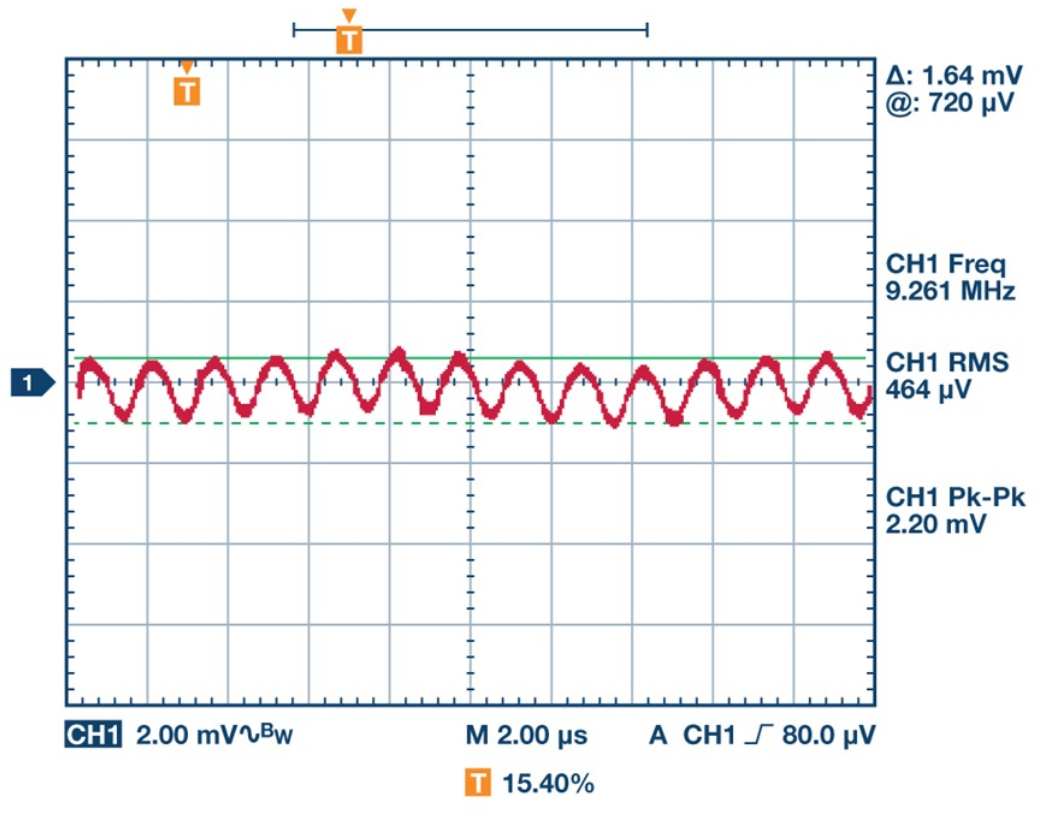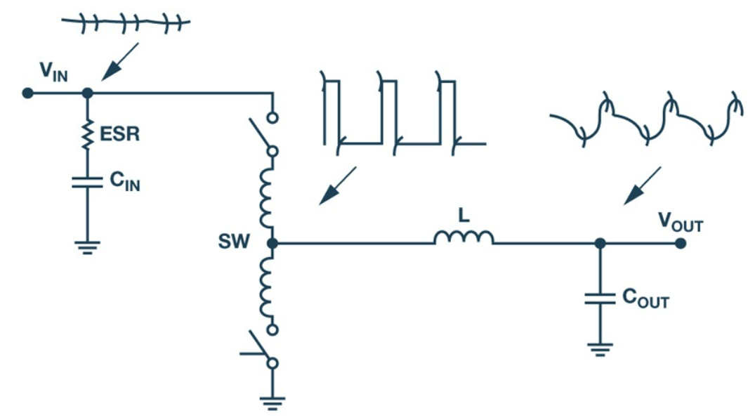 对于降压稳压器,基波幅度与输入电压、占空比、开关频率和LC级有关;但是,所有这些参数都会影响应用要求,如效率和解决方案尺寸等。为了进一步降低纹波,建议增加后置滤波器。