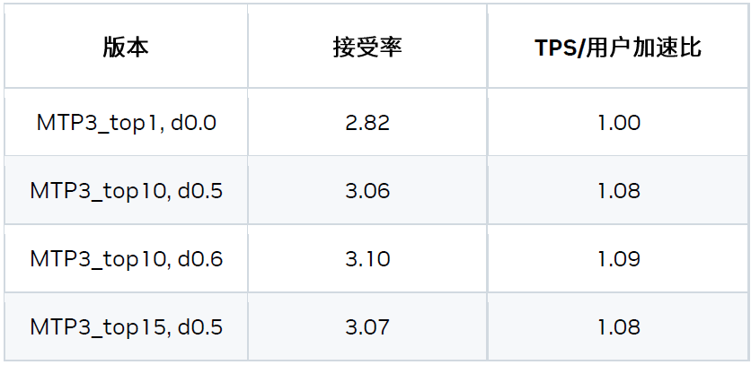 根据我们的研究结果,3x MTP 层的配置性能最佳。
