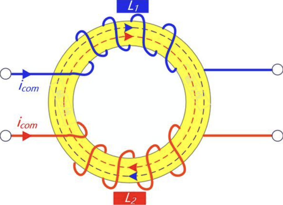 - 对称性:两个绕组在磁芯上的绕制方式对称,确保对共模噪声的抑制效果一致。