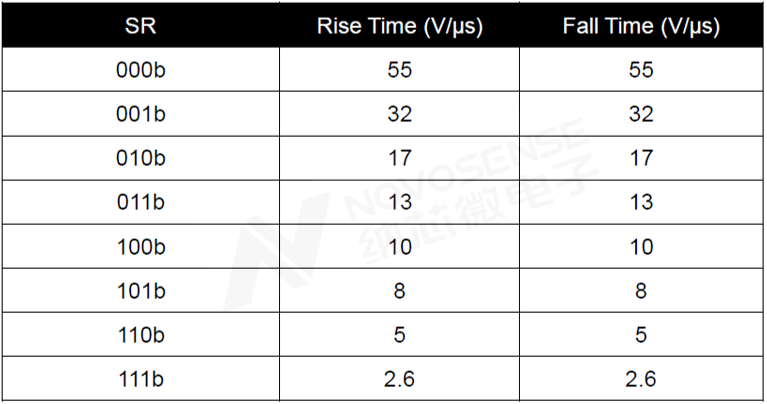输出上升/下降时间压摆率可配置,优化降低EMI性能