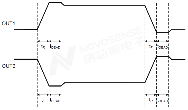 NSD7315支持根据不同负载和不同输入PWM频率,来灵活设置输出的上升/下降Slew Rate,同步配置死区时间,方便工程师在不更改硬件设计的前提下,通过软件(SPI版本)或者SR管脚(HW版本)来优化温升和EMI性能。