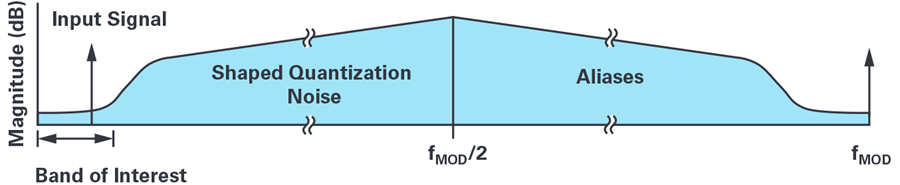 另一方面,由于架构不同,∑-∆ ADC操作也略有不同。在这种类型的转换器中,内部核心(即调制器)对输入信号采样的频率(调制器频率, fMOD))比奈奎斯特规定的最小频率高,因此它被称为过采样ADC。
