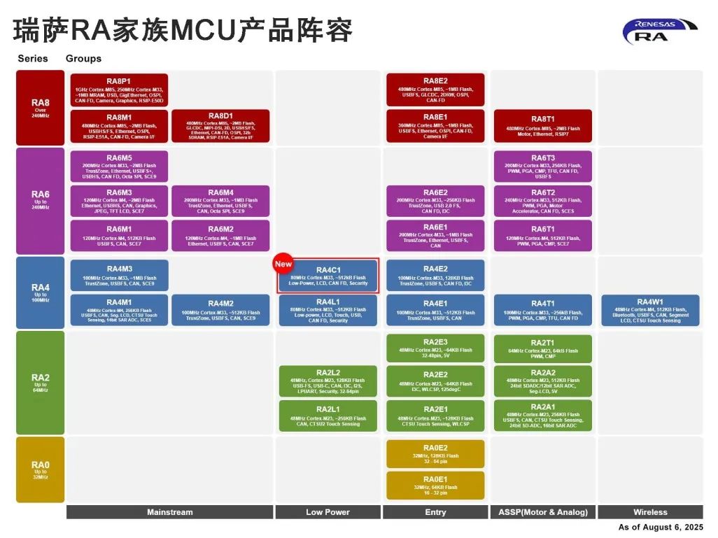 全球半导体解决方案供应商瑞萨电子(TSE:6723)宣布推出基于80MHz Arm® Cortex®-M33处理器的RA4C1微控制器(MCU)产品群。全新MCU具备超低功耗、高阶安全特性、丰富的通信接口以及段码式LCD支持。得益于独特的功能组合和性能指标,使其成为需要严格安全性电池供电应用的理想之选,涵盖电表、燃气表、水表和工业流量计,以及智能锁、恒温器、楼宇控制系统、工业用户界面等领域。此外,这一新MCU十分契合国内大型电力计量系统控制市场的需求。