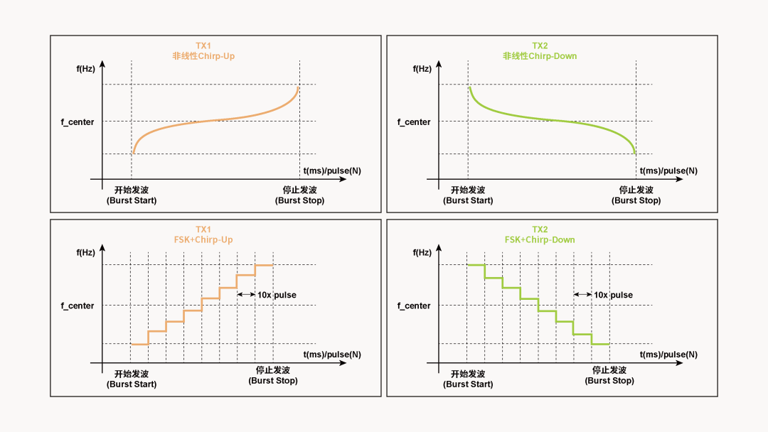 NSUC1800满足AK2超声雷达协议标准,覆盖UPA、APA、AVP等全场景。其频点任意可配置的编码方式可以支持多种Chirp和FSK+Chirp方案,扫描速度和抗干扰能力显著增强,可在两个周期内完成保险杠扫描。