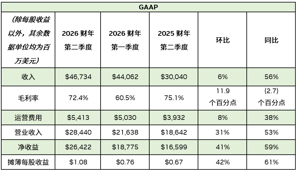GAAP 和非 GAAP 运营费用预计分别约为 59 亿美元和 42 亿美元。2026 财年全年运营费用增长率预计达到 30% 区间高位水平。