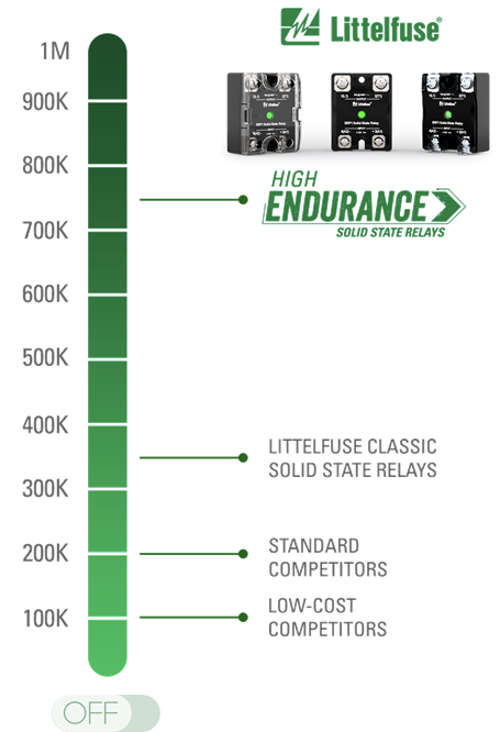 Littelfuse SRP1系列具有更高可靠性与超过70万次的寿命,提供直流4-32Vdc驱动与交流90-280Vac驱动两个可选方案,电流覆盖范围10-50A,输出电压有24-240Vac以及40-600Vac,开关类型有过零与瞬态可选。