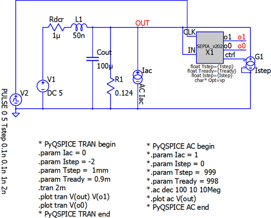 对由SEPIA@QSPICE模块生成的“瞬态”模型进行瞬态仿真。