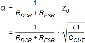 在这个模型中,我们将电感器DCR和负载电阻R1提供的阻尼电阻成分进行了分配。该电路中与Q的关系由以下等式表示。