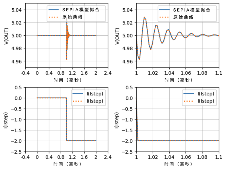 在SEPIA的输出中我们可以观察到,与源原理图仿真相比,在时域中我们得到了完全一致的曲线,没有明显的差异(图8)。