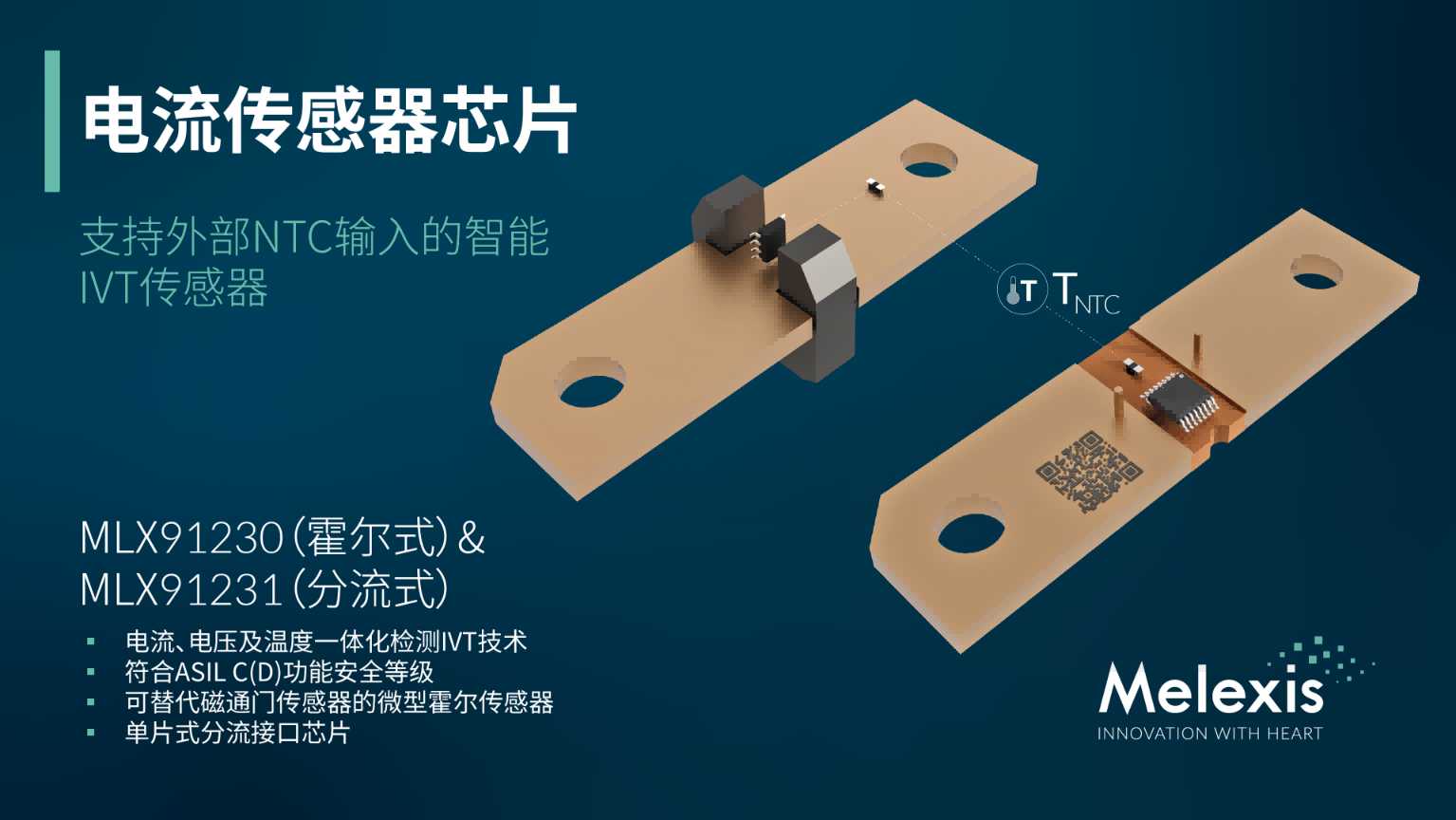 将NTC输入集成到MLX91230和MLX91231传感器中,显著增强系统对温度变化的检测能力。对于MLX91231(分流接口)传感器,该功能还提供一种额外的应用场景,可补偿分流电阻随温度变化产生的残余差异,进一步提高电流检测的精度。此外,新的NTC输入符合ASIL C标准,可应用于汽车安全关键领域,如汽车电池、直流快速充电、智能热熔断器和电源分配模块等。