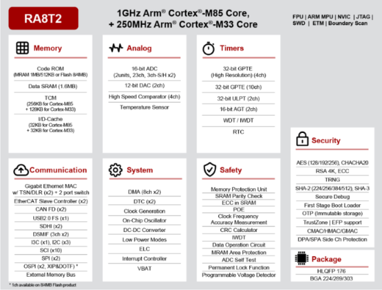 1GHz Arm Cortex-M85和250MHz Cortex-M33内核