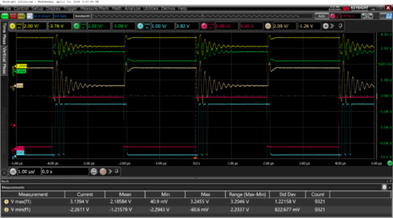 下图为星型组网下,常规CAN-FD SBC 和TPT1169xQ的CAN SIC SBC信号波形对比。可以看到TPT1169xQ在组网环境下的通讯总线电平波形质量有了极大的提升。