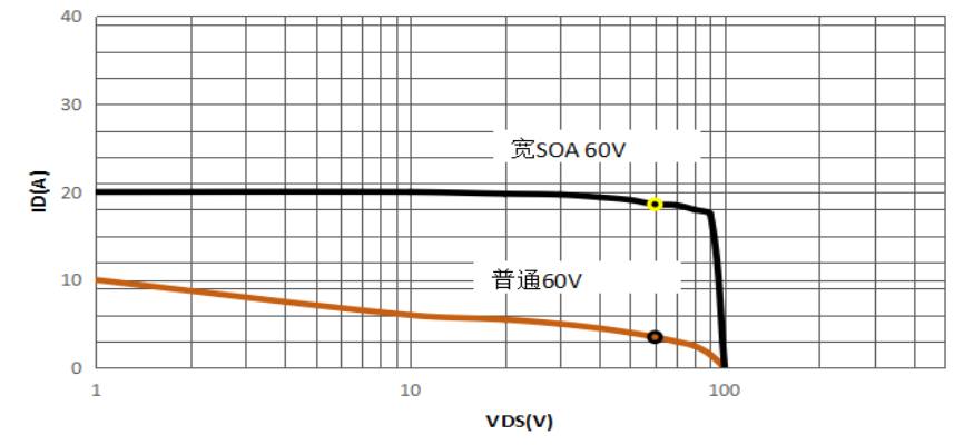 根据VB推出的100V MOSFET产品为例,SOA优化的产品,60V实测,过电流能力提升了3-4倍,从而提升了系统应用的可靠性。
