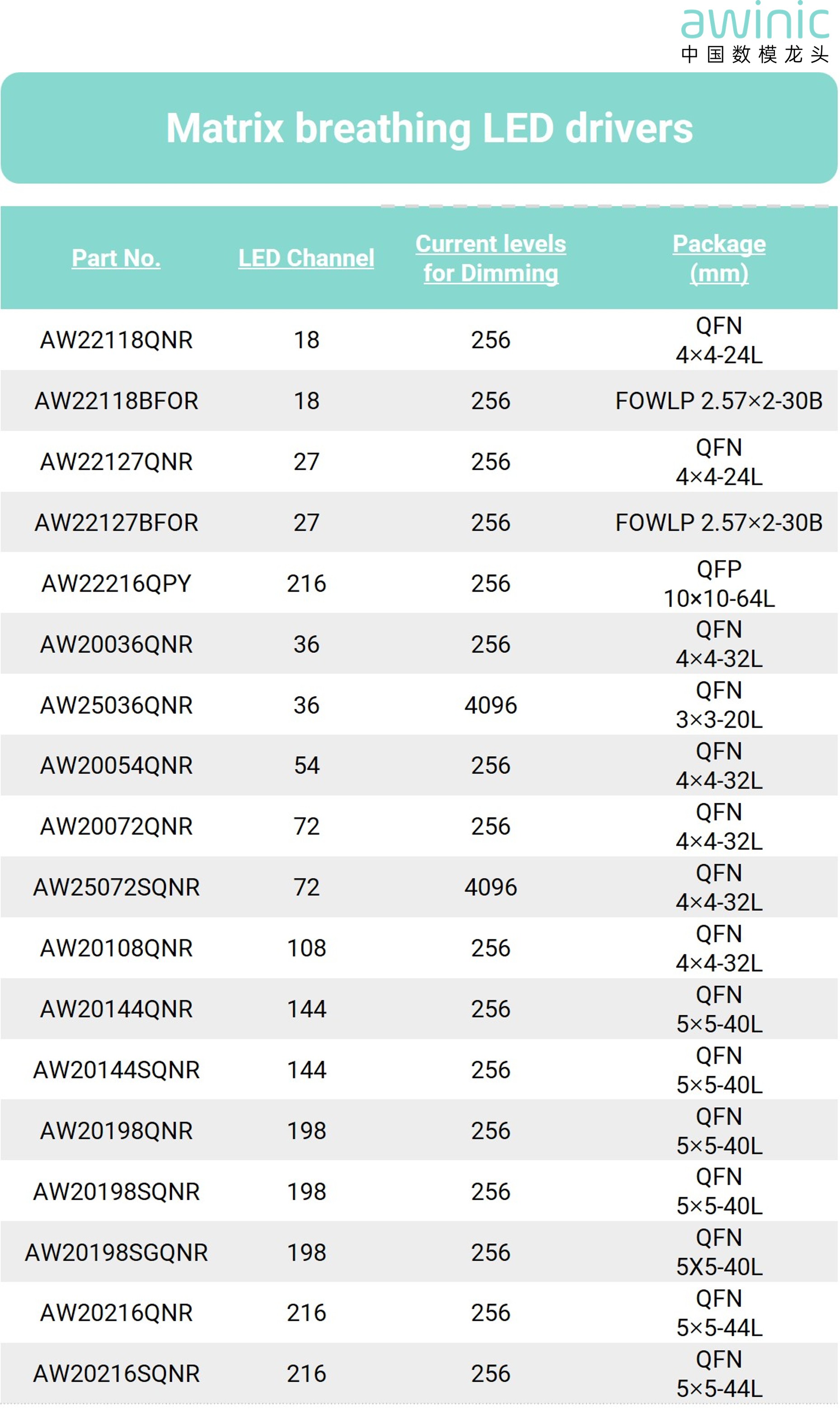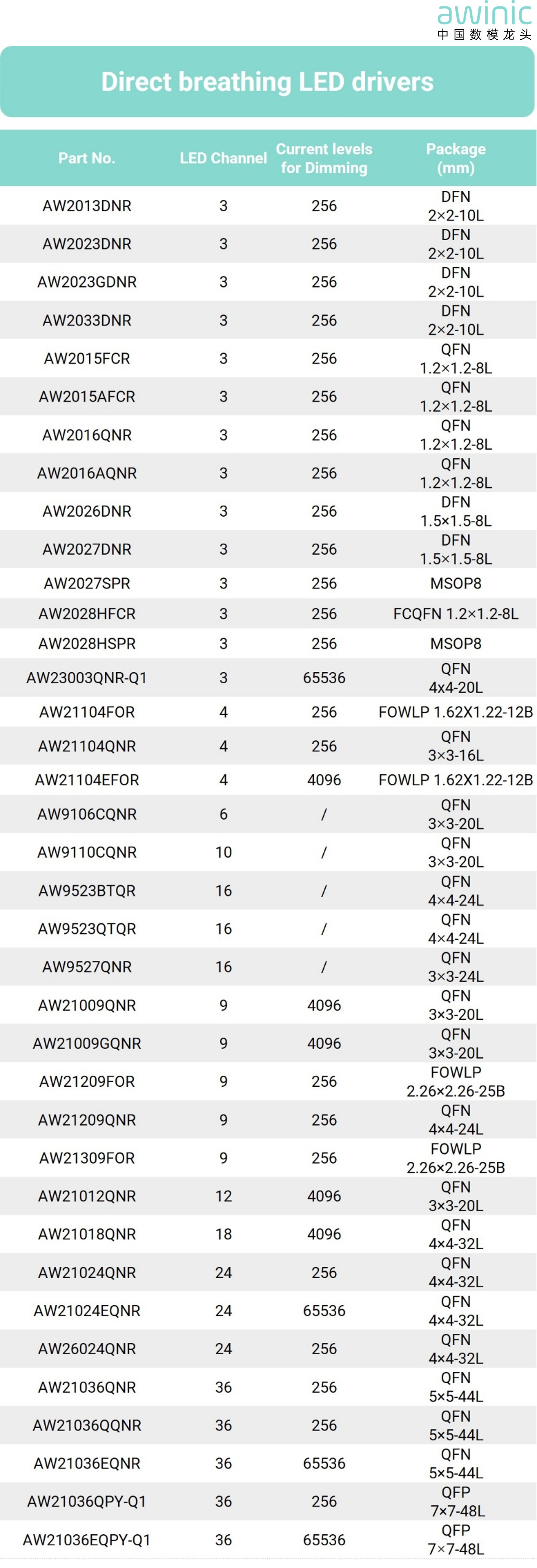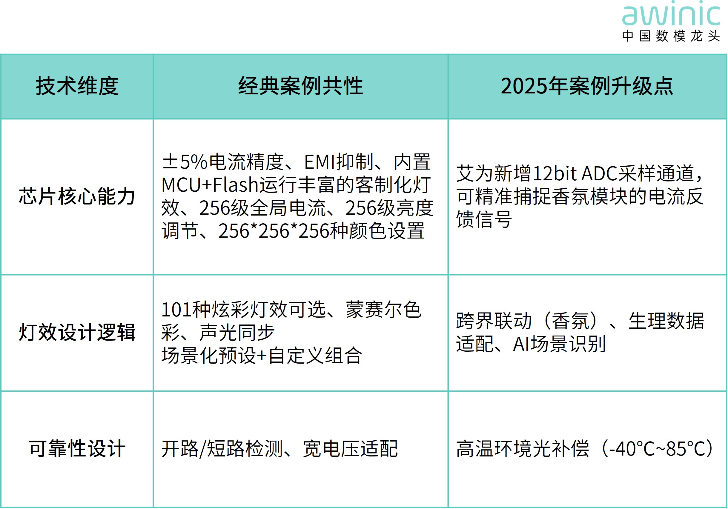 - 智能亮度调节:艾为灯语系列产品支持 GCC(全局电流控制)、PWM(脉冲宽度调制)、Color(颜色控制)多维度调节: