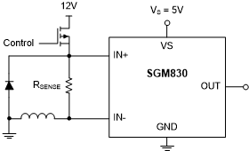 SGM830 采用了零漂移输入架构,具有极高的精度,其失调电压很低(典型值 20μV,最大值为 ±170μV),并且在 -40℃ 至 +125℃ 的宽温度范围内的温漂也很小。这些特性提高了测量精度,尤其适用于低电流检测电压的情况,并允许使用较小的分流电阻以最小化功率损耗。