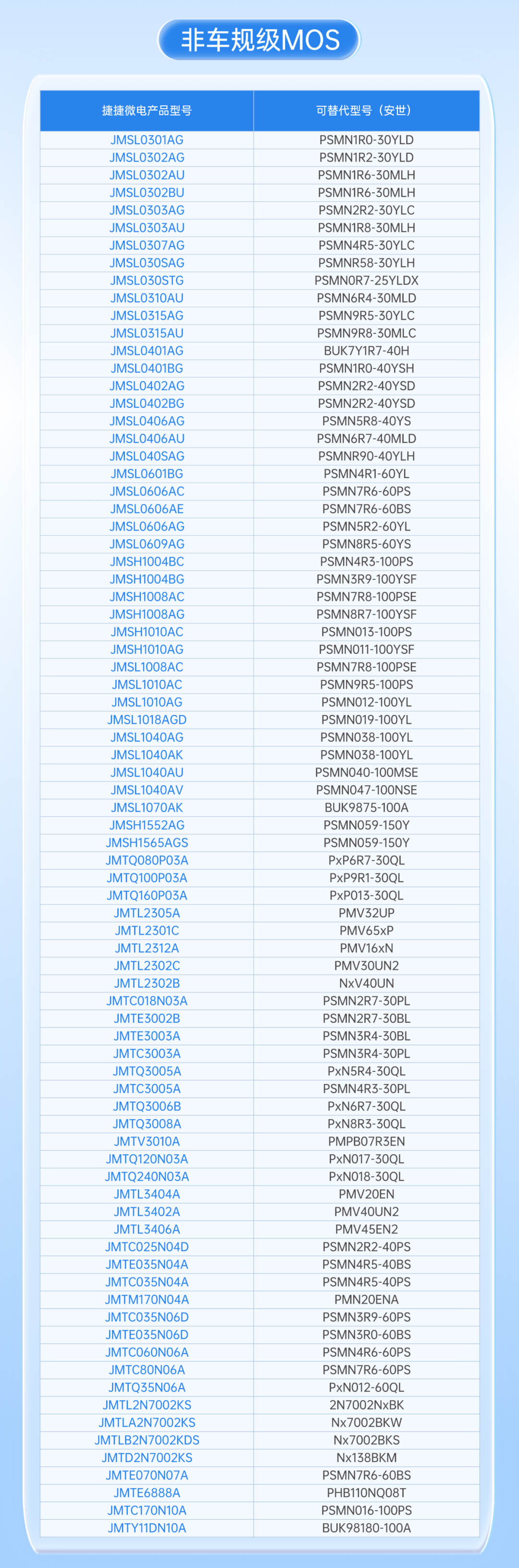总而言之,当行业在寻找安世的替代方案时,捷捷微电提供的远不止于此。我们凭借更卓越的产品性能 ,在关键的能效与可靠性指标上实现了对标与超越。安世留下的空白,恰恰成为了验证我们技术实力的试金石。选择我们,意味着您不仅解决了供应链的安全问题,更是在为您的产品注入更强劲的“中国芯”性能。如果您对我们的产品感兴趣,欢迎随时邮箱联系我们muyan@jjwdz.com,也可登录我们的官网www.jjwdz.com进一步了解。