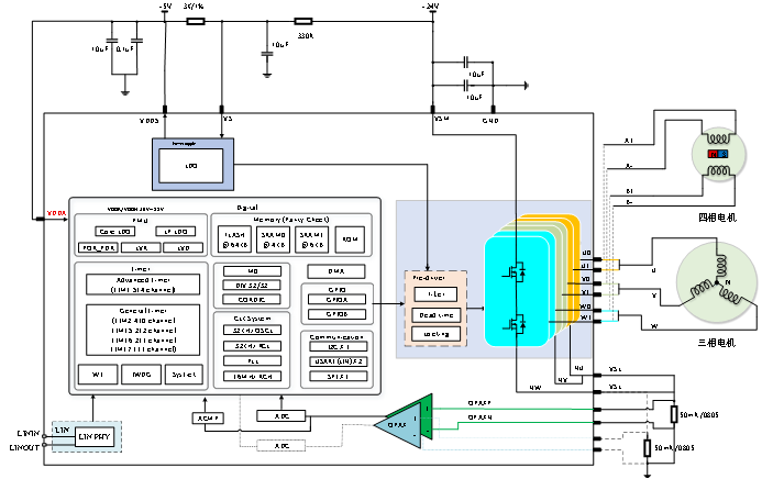 | 适用电机 | 两相四线步进电机控制 / 三相无刷电机控制 |