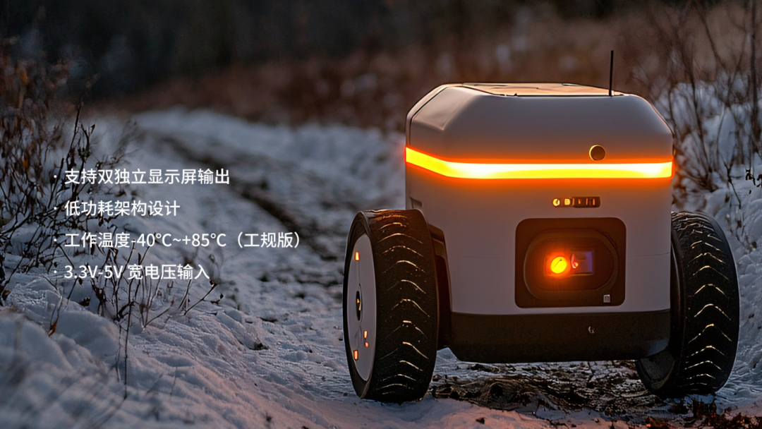 支持LVDS与HDMI2.0双独立屏输出,机器人正面屏幕可显示服务进度,侧面屏幕同步显示避让提示,减少工作人员与机器人的交互冲突。