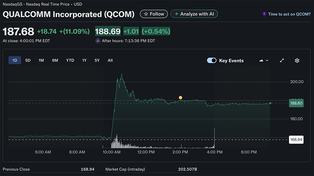 高通发布面向数据中心的下一代AI推理优化解决方案,包括基于云端AI芯片Qualcomm AI200和AI250的加速卡及机架。两款芯片均采用高通Hexagon NPU,预计将分别于2026年和2027年实现商用。高通称,凭借该公司在NPU技术方面的优势,这些解决方案可提供机架级性能和出色的内存容量,以高性价比实现快速的生成式AI推理,有助于实现可扩展、高效且灵活的生成式AI。沙特支持的AI创企Humain将从2026年开始部署200兆瓦的高通新型AI机架。受此消息影响,高通股价飙升11%。