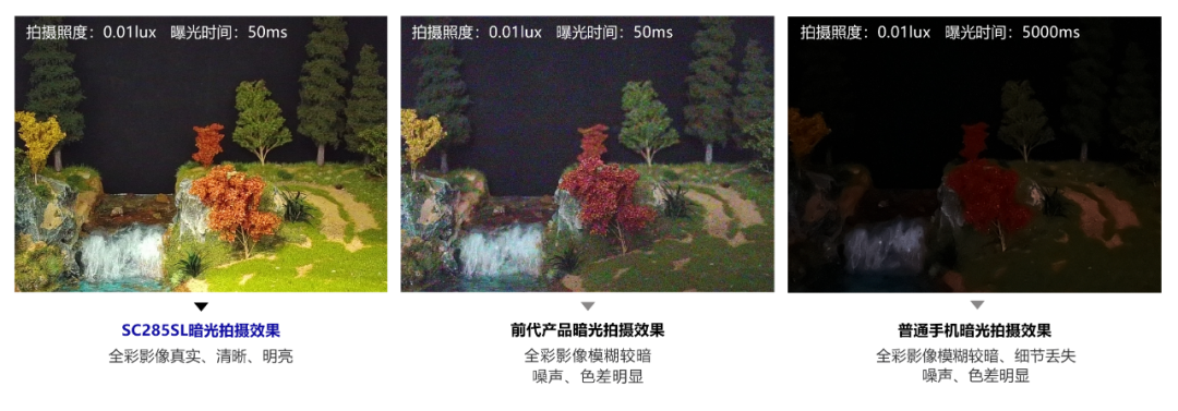 黑光全彩摄像头通常需要借助补光才能实现暗光环境中的彩色成像。SC285SL搭载思特威专利SFCPixel®技术,拥有4.0μm像素尺寸,感光度高达12236mV/lux*s,SNR1s值低至0.1lux,能够在户外极低照度且无补光的环境条件下,帮助摄像头实现清晰明亮、色彩真实的全彩影像。